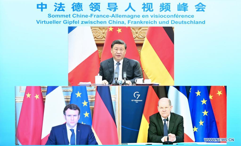 Le président chinois Xi Jinping a tenu mardi un sommet vidéo avec le président fran?ais Emmanuel Macron et le chancelier allemand Olaf Scholz.