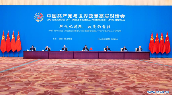 Xi Jinping, secrétaire général du Comité central du Parti communiste chinois (PCC), a proposé l'Initiative de civilisation mondiale à la Réunion de haut niveau du dialogue entre le PCC et des partis politiques mondiaux.