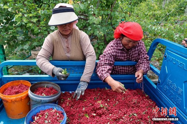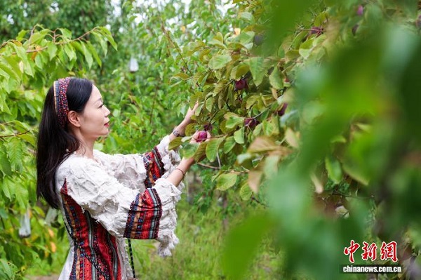 Ces derniers jours, à Jainca, dans la province du Qinghai, des visiteurs cueillent des pommes dans le village de Lhamo. Situé sur les rives du fleuve Jaune, ce village est un village de relogement pour des personnes venant de régions avec des conditions de vie difficiles. Ces dernières années, grace à l'aménagement de terres en friche et de pentes peu productives, ainsi qu'à la participation des villageois en mettant leurs terres en actionnariat, le village a développé une économie collective, ainsi les prunes, pruniers européens, pêches et autres fruits et légumes cultivés y rencontrent un grand succès sur le marché, chaque année, permettant aux villageois de recevoir des dividendes annuels, ouvrant ainsi de nouvelles perspectives pour la revitalisation rurale.