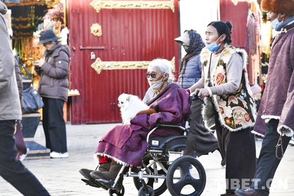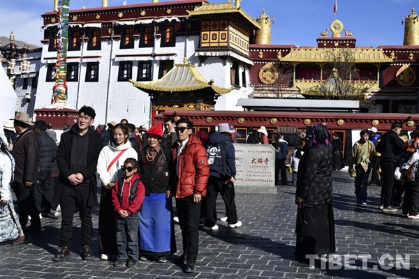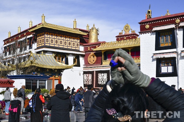 à l'approche du Nouvel An tibétain, la rue Barkor à Lhassa conna?t une forte affluence de fidèles venus prier et effectuer des pèlerinages. Chaque année, dès la fin octobre, pendant la période creuse des travaux agricoles, des fidèles venus de Chamdo, Nagqu, Ngari ainsi que des provinces du Sichuan, du Qinghai, du Gansu et du Yunnan entreprennent de longs voyages pour venir en pèlerinage. Outre le temple du Jokhang à Lhassa, le palais du Potala, le monastère de Drepung et le monastère de Sera, hauts lieux du bouddhisme tibétain, accueillent également un grand nombre de pèlerins.