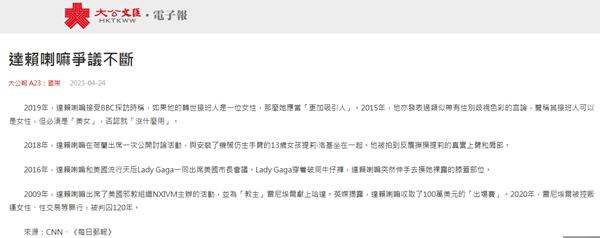 Article consacré au sujet tiré du site internet du journal hongkongais Ta Kung Pao