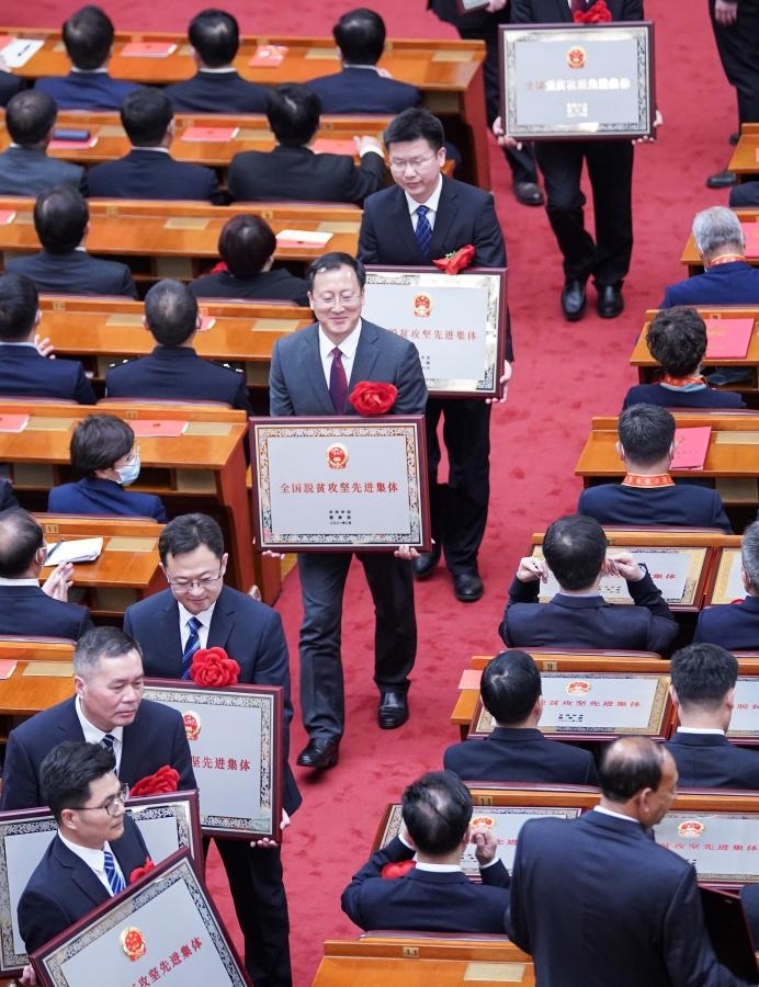 La Chine a organisé jeudi un grand rassemblement au Grand Palais du Peuple, à Beijing, pour marquer les réalisations du pays en matière d'éradication de la pauvreté et faire l'éloge des modèles dans cette cause.