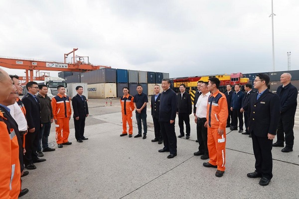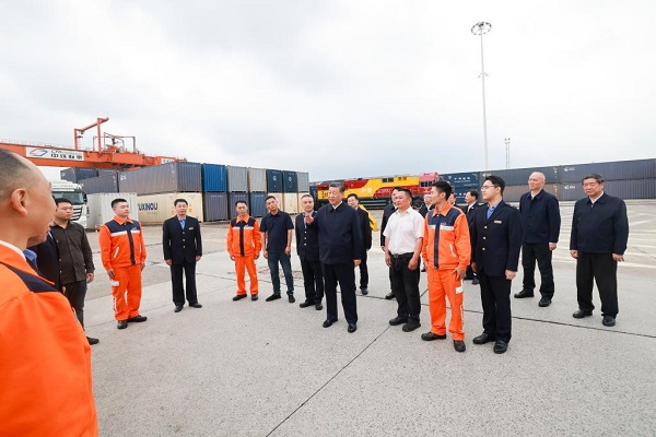 M. Xi a également visité une station de conteneurs à Chongqing, où il a mis l'accent sur l'importance de la logistique pour le développement de la région de l'ouest.