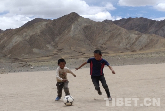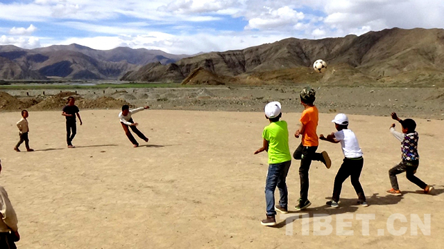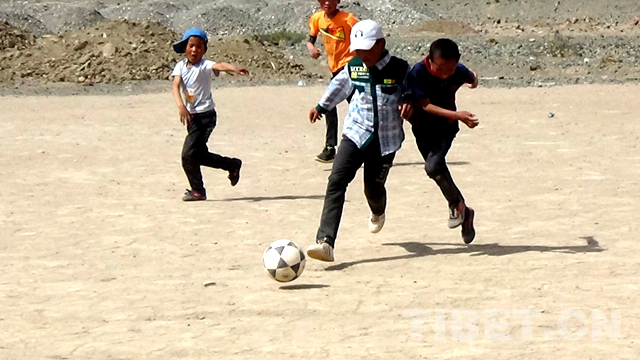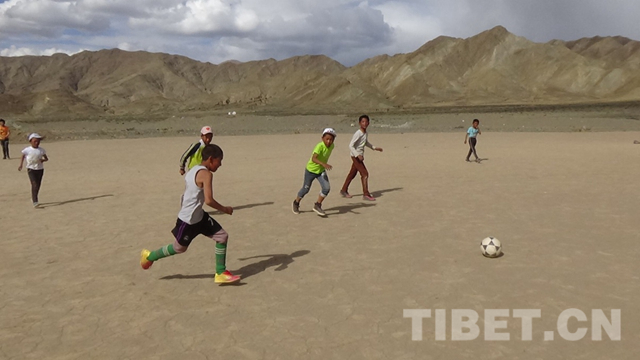 Chez ces jeunes de Xiaza, la cage de football est dressée à partir de vêtements et de pierres. Le terrain est lui en même temps le séchoir à orge. Quoiqu’il manque de lignes délimitant les zones, ces joueurs ont déjà pris par coeur les règles, le champ de jeu, l’emplacement du cercle central, les positions de hors-jeu ainsi que par où il convient de servir la balle.