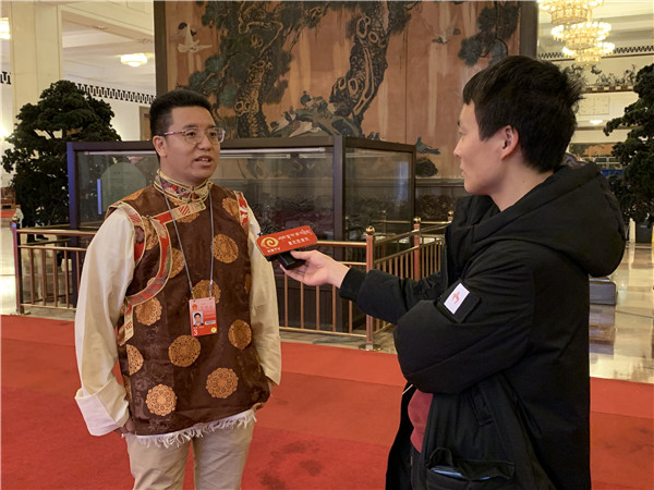 Tsewang Bianjue dans sa pièce de traduction lors des "Deux sessions 2019"