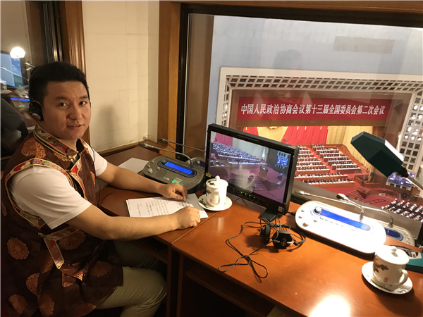 Dans son travail depuis de nombreuses années, Tsewang Bianjue a développé d’excellentes compétences. Grace à son expérience de travail riche et à ses excellentes compétences en traduction, lors des ? deux sessions ? de cette année, Tsewang a été élu à la tête du groupe d'interprétation et de traduction en langue tibétaine du secrétariat des ? deux sessions ?.