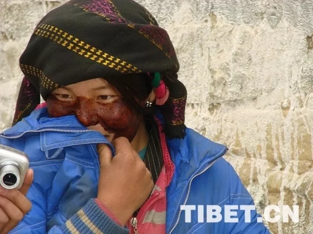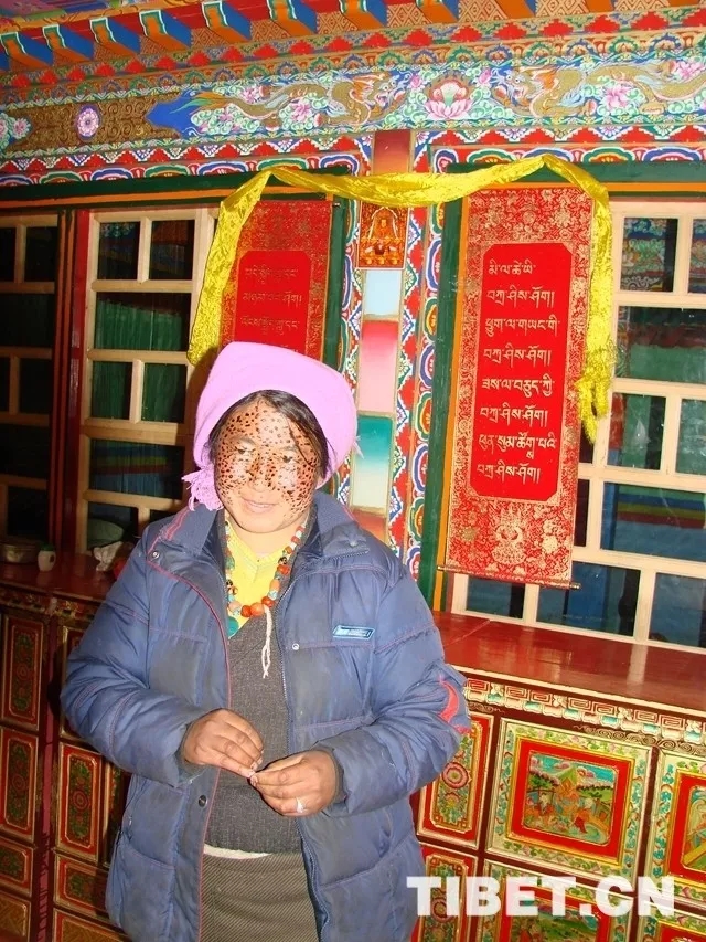 Une femme tibétaine qui a appliqué de l'Anda.