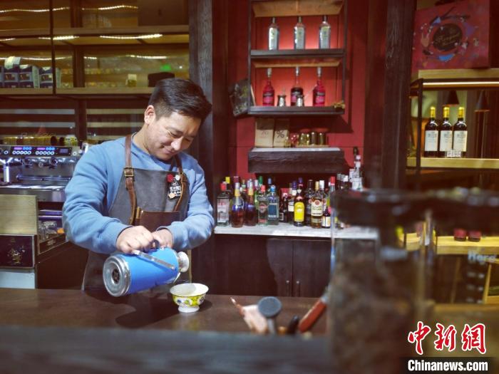 "Un jour de travail comme aujourd'hui, je ne m'attendais pas à autant de clients." En parlant, Gonpo Tsering accélère les choses en main. "Lorsque vous venez à notre boutique, n'oubliez pas de go?ter l'orge tibétaine au lait d'orge, le café noir au beurre et l'Anduo'aoga. Vous ne verrez ces trois verres nulle part ailleurs qu'ici."