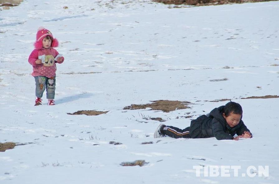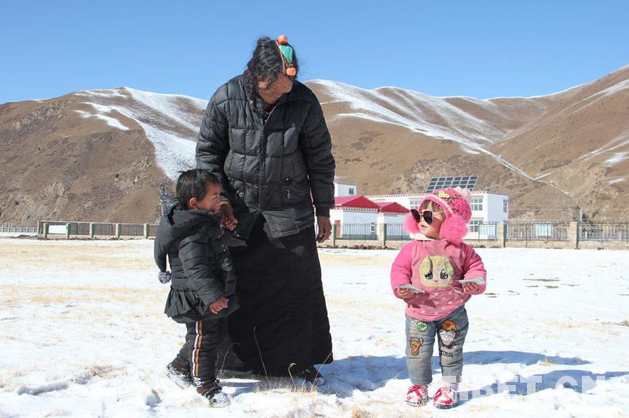 "Grand-mère ! "En appelant, le petit Tashi courut vers sa grand-mère Riangchuck Lhamo, suivie de sa jeune s?ur, Gama. Elle a trébuché, et est tombée dans la neige. C'est ce que notre journaliste a vu, en route partant du chef-lieu du comté de Riwoché (ou Riwoquê), Chamdo, Région autonome du Tibet, et longeant la route nationale 317 jusqu'au village de Puqiong, canton de Changmaoling, à la Réserve naturelle nationale de Riwoquê pour les wapitis tibétains. (NdT : le wapiti tibétain est une espèce de cerfs)