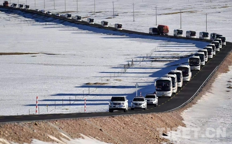 En photo : la population de Nagqu en route pour la relocalisation.