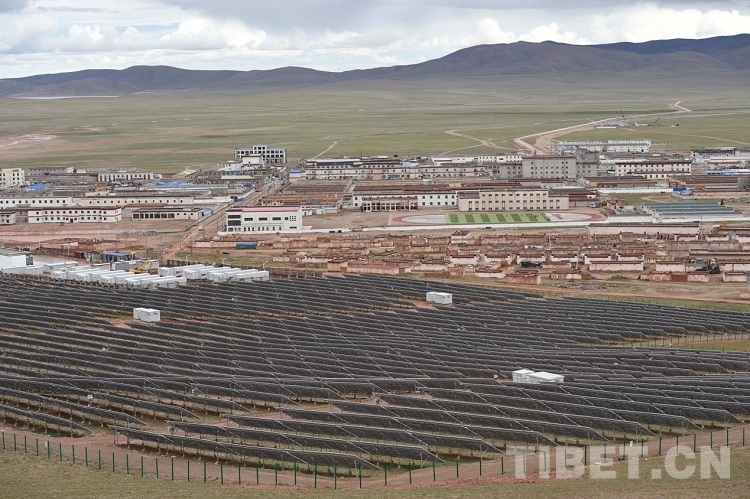 En photo : vaste étendue équipée de panneau solaire, à Shuanghu.