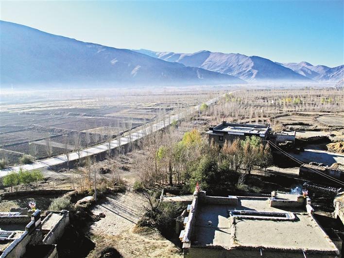 En photo : vue matinale du village de Jiuhe, dans le district de Qiongjie.