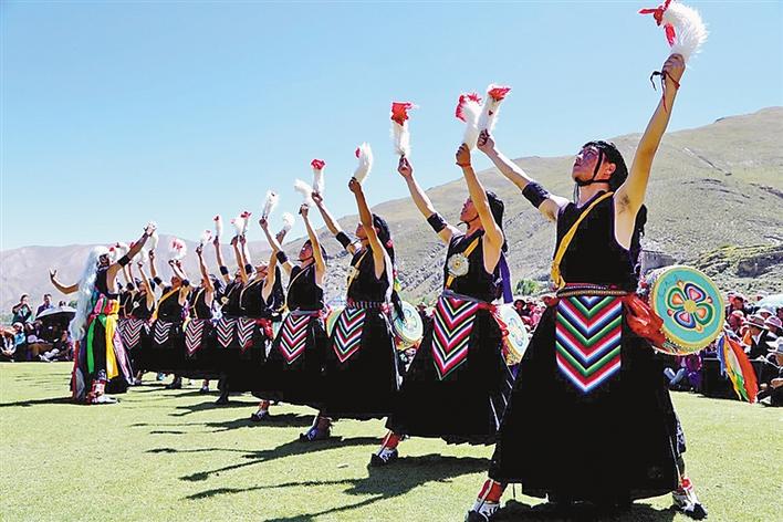 Le village de Jiuhe, dans le district de Qiongjie de la ville de Shannan, Tibet, est le berceau du projet national du patrimoine culturel immatériel de ? la danse Zhuo de Jiuhe ?. En tant qu'art de danse populaire de prière pour le bon augure répandue dans le Shannan, ? la danse Zhuo de Jiuhe ? est appelée ? la danse du tambour de taille ? au Tibet, et elle a une histoire de plus de 1 300 ans. ? La danse Zhuo de Jiuhe ? est un art spécial dans la culture de la danse traditionnelle tibétaine ; c'est également l'une des plus anciennes formes de danses traditionnelles parmi toutes les nationalités du monde.