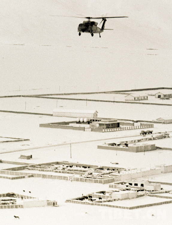 Des télégrammes express spéciaux ont été envoyés de la zone sinistrée. Ils se sont rapidement propagés de Nagqu à Lhassa, et de Lhassa à Beijing. Le gouvernement central a envoyé des avions de transport pour ravitailler à travers des parachutages de fournitures. Le 27 mars, en tant que photojournaliste, je suis monté à bord d'un hélicoptère de sauvetage pour observer l'opération. Ma caméra a enregistré les moments où l'hélicoptère a largué des nécessités telles que de la tsampa, de l'orge tibétaine, du carburant, des vêtements et des lunettes de protection contre la neige aux bergers assiégés par ces fortes chutes de neige.