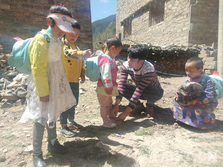 Ongmo (pseudonyme) est un étudiant qui est paralysé et restreint à son lit. Le village où il habite est le plus éloigné du canton et le trajet dure plus de deux heures en voiture. Afin de garantir que ces enfants spéciaux apprennent autant que les autres enfants, Gangjo et les autres professeurs ont fait une randonnée dans les montagnes de plus de 4 heures aller-retour en voiture, afin de faire des ? visites pédagogiques ? au domicile des étudiants plusieurs fois par mois. Les étudiants apprennent les bases de la langue chinoise, des mathématiques, de la langue tibétaine et d'autres matières. Les enseignants achètent souvent des crayons, cahiers et autres articles de papeterie et même des fruits aux élèves en difficulté. Cela encourage ces enfants à améliorer leur confiance en soi, à étudier dur et à changer leur destin en accumulant des connaissances.