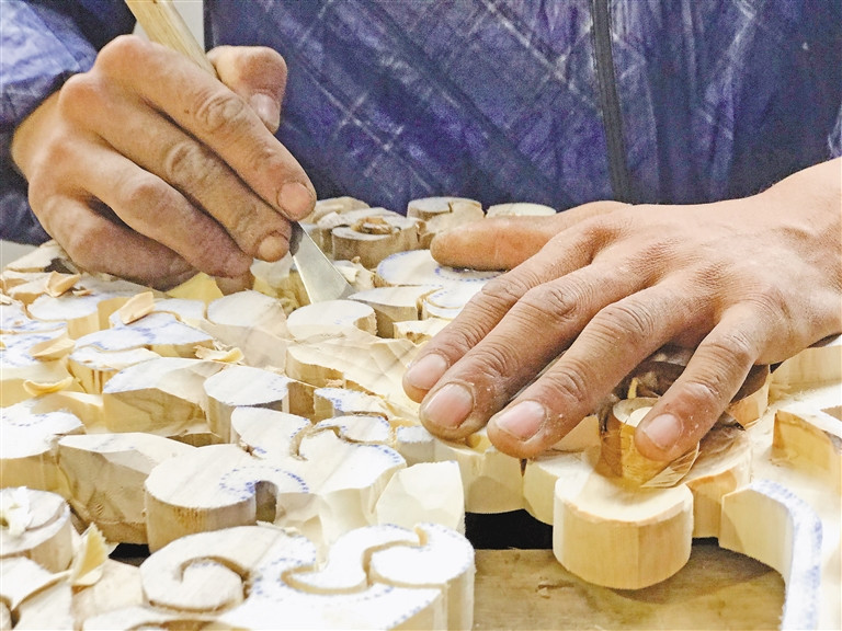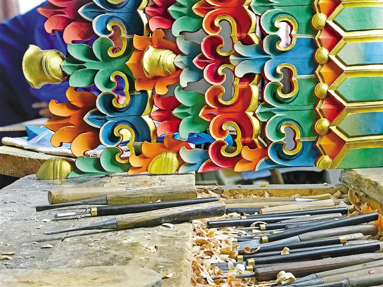 Sur la console du studio, il y a 65 sortes d'outils de différentes tailles. Les ?uvres sculptées par Lhakpa Tsering sont propres et soignées, ce qui montre le charme et le style de cet art. Cependant, il faudra une journée et demie pour achever un ornement architectural d'environ 50 cm de long et 15 cm de large.