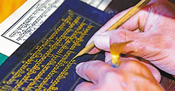 à l'age de 13 ans, Karma Chodrak a commencé son apprentissage de la sculpture. Après des longues études et pratiques, les techniques de la calligraphie et de la sculpture tibétaine de Karma Chodrak s'améliorent de plus en plus. En 2014, il est devenu un héritier représentatif du patrimoine culturel immatériel de sa ville. Aujourd'hui, les sculptures de calligraphie tibétaine de Karma Chodrak sont bien connues, et les commandes ne cessent de lui arriver, et bien qu'il soit bien lancé sur la route de l'enrichissement, mais il n'a pas oublié de pousser ses villageois et les aide à devenir riches ensemble.