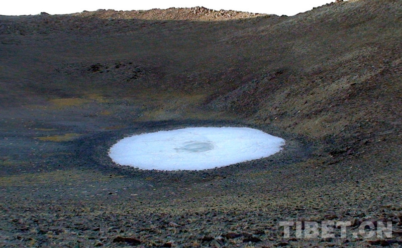 En photo : le paysage du cratère volcanique de Bamao Qiongzong scellé par un lac de glace (Photo de Tang Zhaoming en 2002).