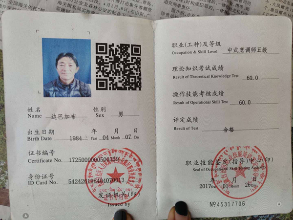 En photo : certificat d'une formation suivie par Palbar Gyalpo.