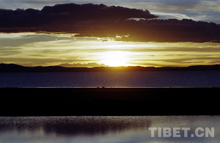 Le paysage de Namtso à la lueur du soleil couchant (photographié par Tang Zhaoming en 1987).