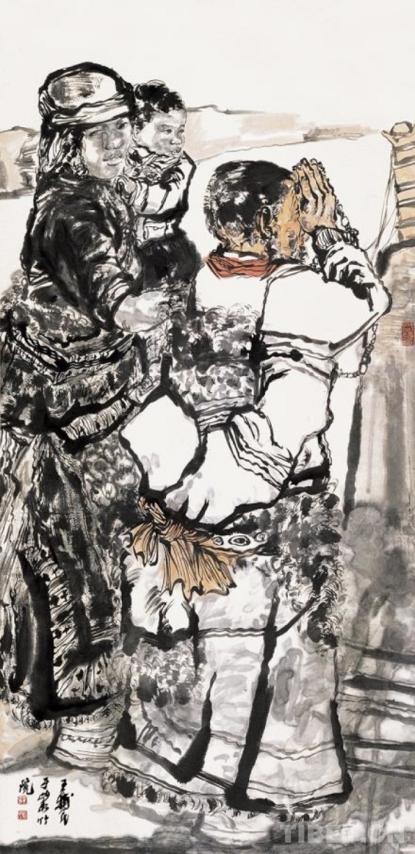 Pour Wang Fumin, peintre de l'Académie nationale de peinture de Chine, les thèmes tibétains font partie intégrante de son parcours artistique. Wang Fumin, qui a grandi dans la région de Longdong, province du Gansu, a été profondément influencé par le patrimoine culturel immatériel, riche et précieux, de l'ancienne terre du plateau de L?ss. De plus, son père était professeur d'art au collège. C'est dans cet environnement qu'il s'est engagé sur la route de l'art. Depuis plus de 40 ans, il évolue dans ce domaine un pinceau à la main.