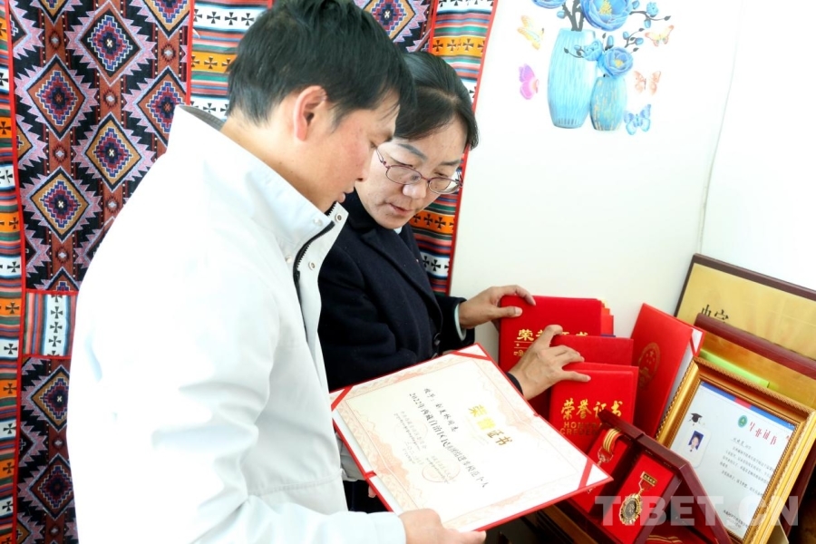 ? Mon travail consiste à mettre en pratique l'unité nationale ?, explique Yangzom, qui occupe désormais un poste de traductrice bilingue chinois-tibétain. Ces dernières années, le couple est devenu un modèle connu de tous et a re?u de nombreuses distinctions. En contemplant les certificats et dipl?mes soigneusement rangés chez eux, Yangzom déclare : ? Le bonheur de notre petite famille montre que tant que toutes les ethnies sont unies comme une seule grande famille, notre pays prospérera encore davantage. Au fil des ans, nous avons toujours participé activement aux activités organisées par les différentes autorités et nous faisons aussi des dons de temps en temps aux personnes dans le besoin. Nous voulons être à la fois des praticiens, des bénéficiaires et des promoteurs de l'unité nationale. ?
