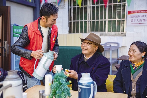 Ces derniers jours, des journalistes ont visité le centre de soins de jour pour personnes agées de Tsemon Ling, situé dans l'arrondissement de Chengguan à Lhassa. Dès leur arrivée, ils sont attirés par une scène animée : un groupe d'a?nés suit avec enthousiasme les mouvements d'un animateur – bras levés, jambes tendues, hanches souples – dans une belle harmonie, leurs visages rayonnant de bonheur. Après la séance, Trinley s'est installé dans l'espace repas, savourant un thé au lait sucré accompagné de kasai (beignets tibétains), tout en partageant anecdotes et histoires du quotidien avec ses compagnons, dans une atmosphère rieuse et conviviale.