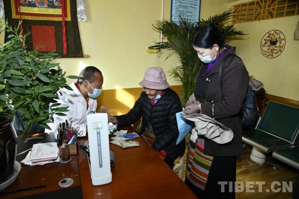 Un médecin du Xizang de première ligne soignant un patient.