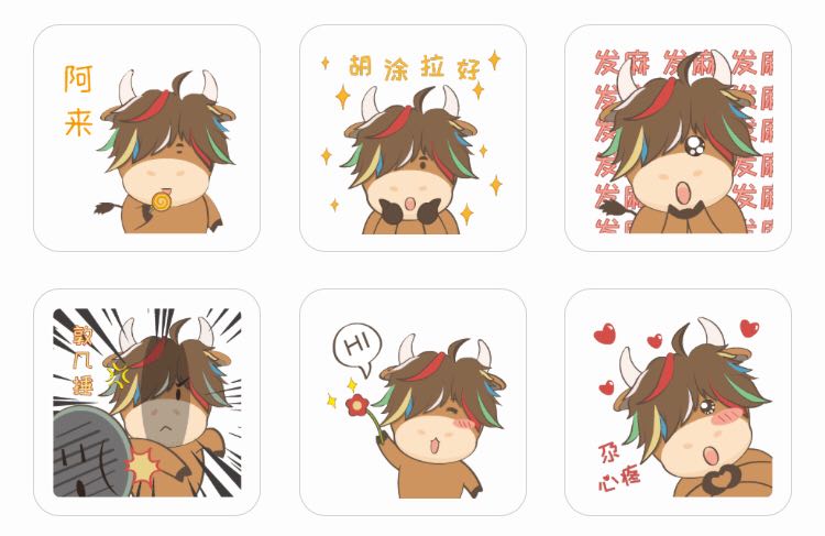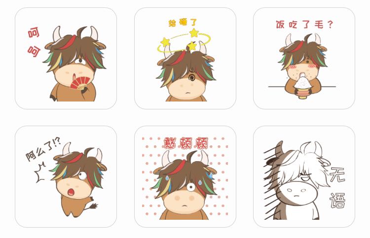 La ? vedette ? de l’émoji Monsieur Yak est très adorable. Les cinq couleurs des cheveux du yak signifient la bénédiction. Au tour du dessin s’affichent des expressions dialectales de la région.
