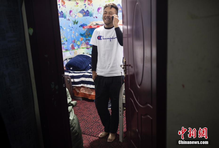 L’enseignant Gengqiu Angjiang au téléphone avec son épouse. Sa famille vit dans le centre-ville. Il ne peut retrouver sa famille que le week-end. C’est le même cas pour les autres enseignants.