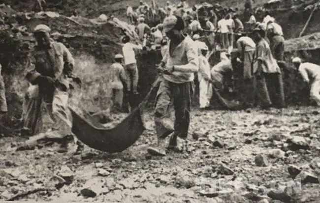 Quand tout le monde s'inquiétait de ne pas avoir assez de nourriture, les caporaux de la 18ème armée ont pensé à une fa?on de faire face à la faim sur le chantier : manger deux repas par jour. Le matin, ils mettaient beaucoup de riz et peu de légumes sauvages dans une casserole pour en faire une bouillie très concentrée. L'après-midi, une fois le travail terminé, ils mettaient un peu de riz et beaucoup de légumes sauvages pour en faire un bouillon très fluide. ? Le commandant de notre division a même raconté l'histoire de nos repas aux différents établissements ?, se vante Wang Gui.
