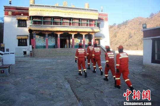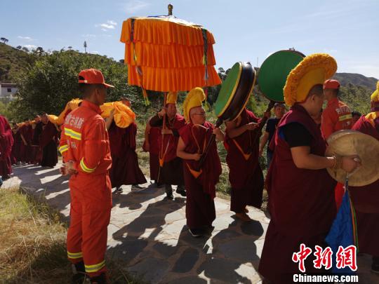 Les pompiers assurent la sécurité et l'ordre lors d'un événement tenu dans le temple de Wudangzhao.