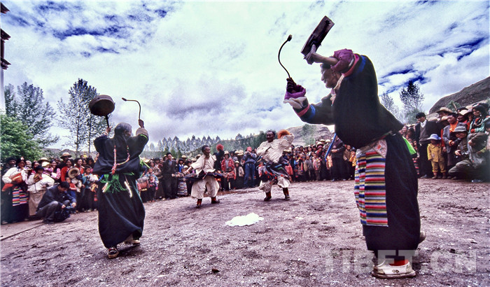 La première fois que j'ai vu le spectacle de danse Reba, c'était dans un théatre à Chamdo. De jeunes et belles actrices tenaient un tambourin et se retournaient sur scène. Dans le rythme rapide, leur jeu de pieds était stable et elles frappaient divers rythmes avec leur tambour dans les mains. Les spectateurs hurlaient constamment.