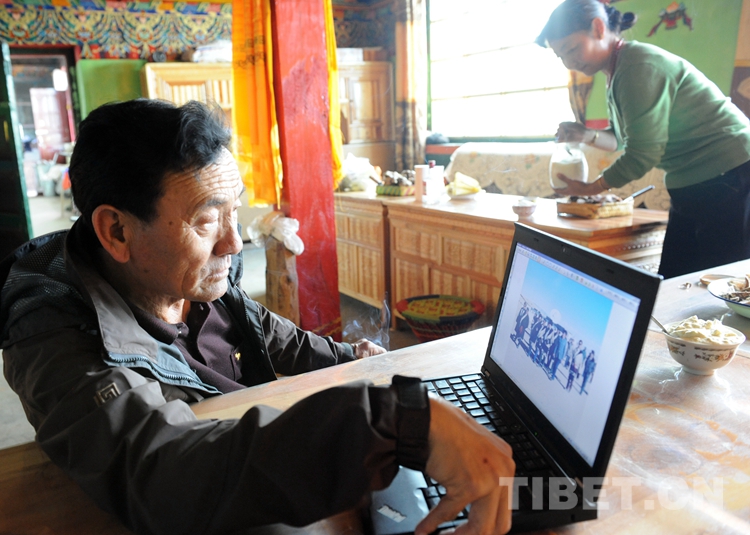 Solang Gongbu en train de regarder des photos de vieux amis sur les ordinateurs.