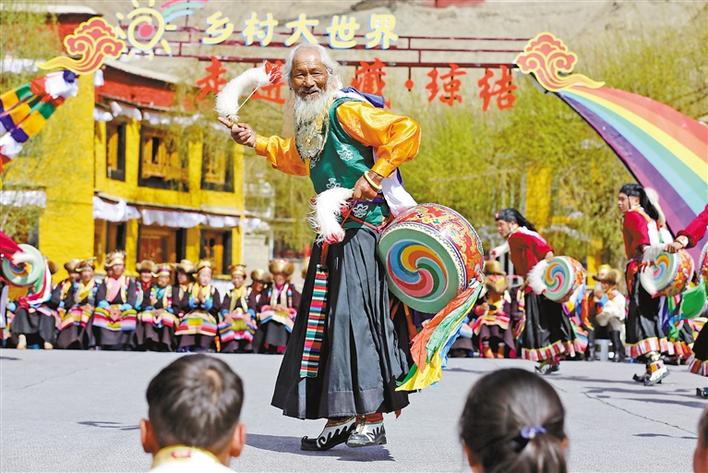 Le village de Jiuhe, dans le district de Qiongjie de la ville de Shannan, Tibet, est le berceau du projet national du patrimoine culturel immatériel de ? la danse Zhuo de Jiuhe ?. En tant qu'art de danse populaire de prière pour le bon augure répandue dans le Shannan, ? la danse Zhuo de Jiuhe ? est appelée ? la danse du tambour de taille ? au Tibet, et elle a une histoire de plus de 1 300 ans. ? La danse Zhuo de Jiuhe ? est un art spécial dans la culture de la danse traditionnelle tibétaine ; c'est également l'une des plus anciennes formes de danses traditionnelles parmi toutes les nationalités du monde.