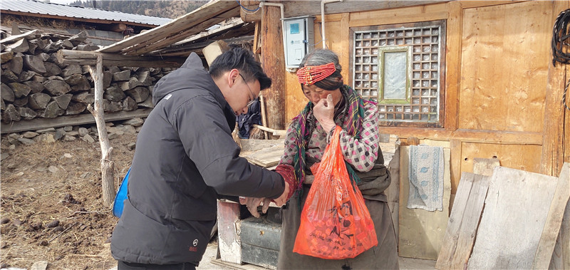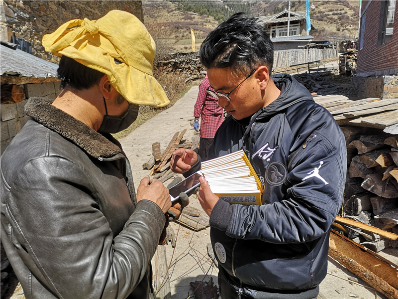 Chez les ménages pauvres, Quiji Ere introduit la politique d'emploi de travail migrant auprès des villageois en tibétain et leur guide pour participer à la construction des infrastructures locales et à d'autres travaux spécifiques. ? En pensant par eux-même, en prenant des décisions et en faisant des efforts, les familles pauvres peuvent améliorer la vie par le travail et éviter de retourner dans la pauvreté. ?