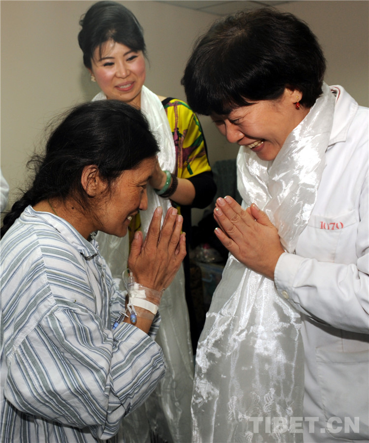 Aujourd'hui, la petite fille qui s'appelle Ngodrup Wangmo, originaire du Tibet, est venue à Beijing pour recevoir un traitement. Après avoir être admise à l'h?pital, la petite Wangmo a re?u des examens médicaux minutieux et une intervention chirurgicale soigneuse par Gu Hong. Désormais, ses problèmes de c?ur sont corrigés.
