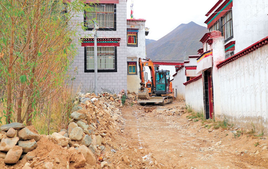 La photo montre la route locale en construction, également sous contrat avec Tenpai Tharchin.