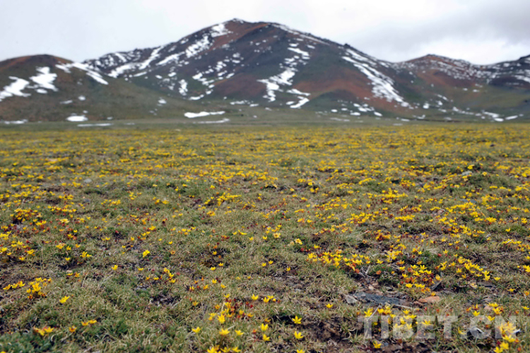 En photo : une zone de végétation de Potentille frutescente fleurissant sur le plateau du nord du Tibet. (Photo : Tang Zhaoming/le 27 juillet 2013)