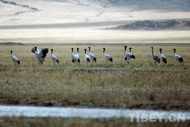 En photo : la grue à cou noir, un animal national protégé de première classe, qui vit dans la zone humide du comté de Xainza sur le plateau du nord du Tibet. (Photo : Tang Zhaoming/2001)