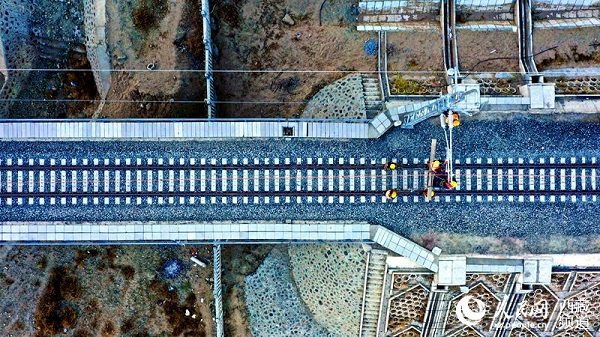 Le chantier d'électrification du chemin de fer Lhassa-Nyingchi.
