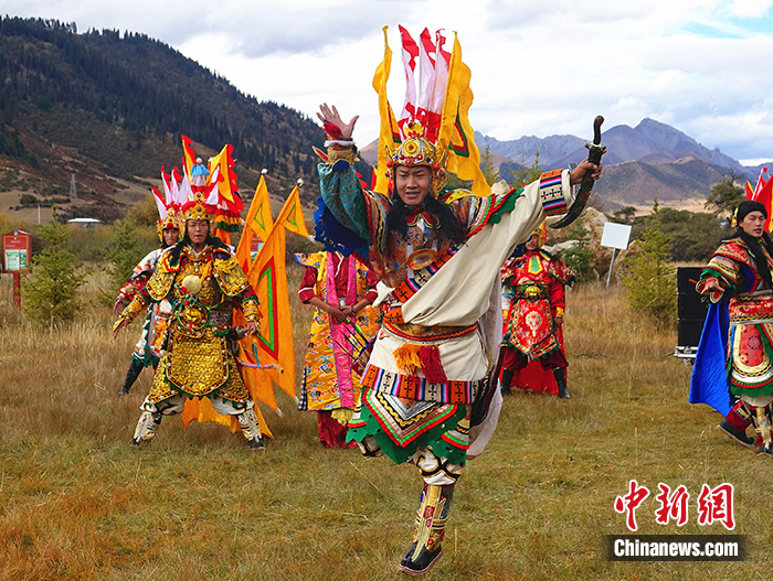 En photo : Jigme Dechen exécutant la danse Cho de Ling dans le comté de Riwoqê, à Chamdo, région autonome du Tibet, le 19 octobre.
