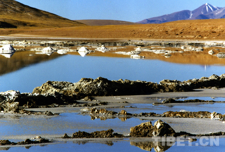 Le lac salé Tsedo Chaka dans les terres désertes du nord du Tibet (photographié par Tang Zhaoming en 1998).