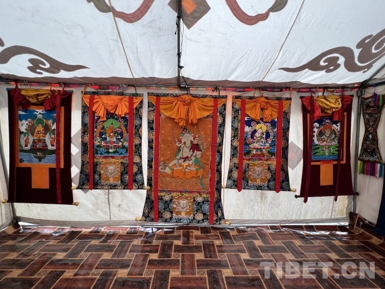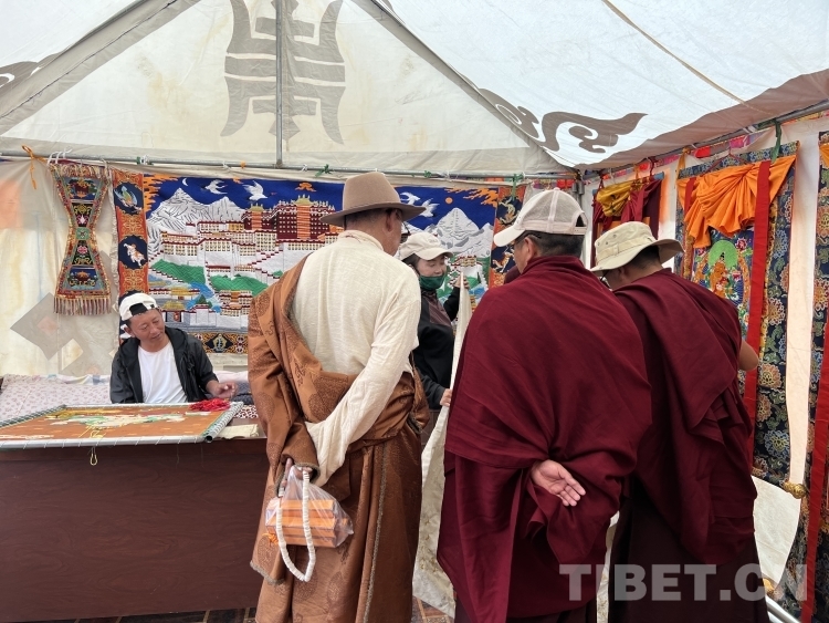 En ao?t 2023, lors de la 17e Foire culturelle et touristique des Sharpas du comté de Dinggyê, dans la ville de Shigatsé, au Xizang, notre journaliste a eu l'occasion rare de découvrir des thangkas en perles. Sous une tente blanche, un couple était concentré sur leur ouvrage, assis devant un métier à broder en bois, enfilant une à une des perles, de la turquoise, du corail et d'autres pierres précieuses. Malgré l'effervescence du marché, ils semblaient étonnamment calmes.