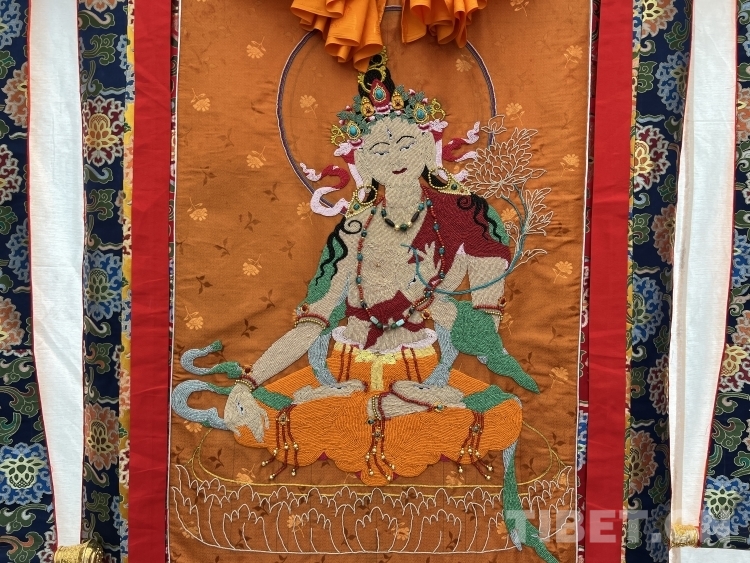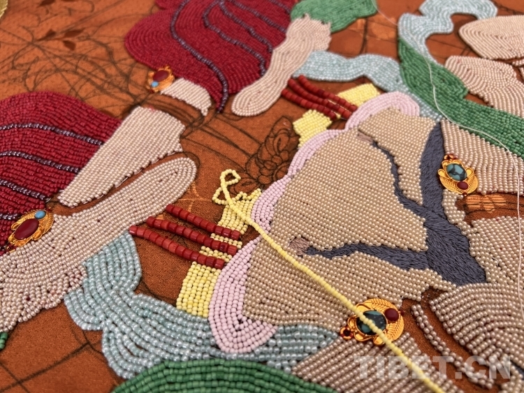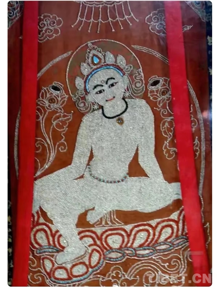 Une fois qu'elle a ma?trisé cette technique, le couple s'est fixé de nouveaux objectifs. Tout en préservant et en développant l'art traditionnel de la broderie Dui, Thubten a souhaité innover en créant des ?uvres de broderie tibétaine plus distinctives, ce qui l'a amené à concevoir l'idée de créer des thangkas en perles. ? L'idée de créer des thangkas en perles m'est venue après avoir vu une peinture de thangka en perles intitulée "Le repos de la Bodhisattva Avalokiteshvara" au monastère de Trandruk à Shannan. J'ai été profondément attiré par son artisanat exquis. Avec des années d'expérience dans la création de broderies Dui, je me suis dit qu'il était temps d'essayer de créer des thangkas en perles ?, a expliqué Thubten à notre journaliste.