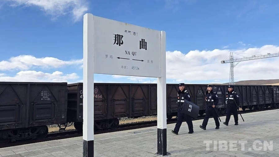 Le chemin de fer Qinghai-Xizang est le premier chemin de fer à pénétrer dans l'arrière-pays du Xizang, et aussi le chemin de fer du haut plateau le plus haut et le plus long du monde. Sur la prairie de Changtang, située à une altitude de 4513 mètres au nord du Xizang, le poste de police de la gare de Nagqu de la police ferroviaire de Lhassa ressemble à une forteresse solide, se tenant ici jour et nuit pour protéger sans relache la ? porte nord ? du Xizang.