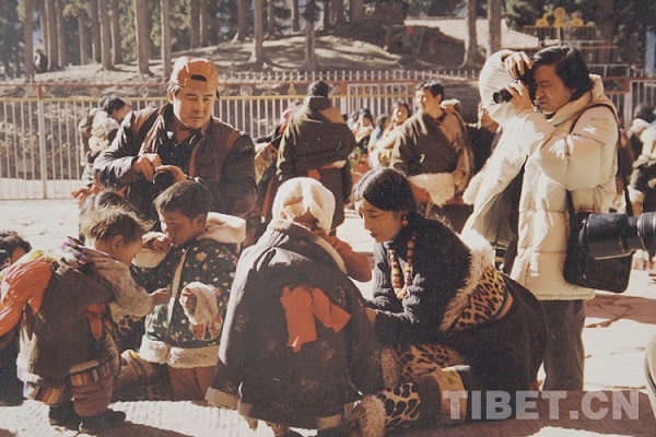 En photo : Wang Fumin faisant des collections artistiques dans la préfecture autonome tibétaine de Gannan, province du Gansu (premier à partir de la droite).