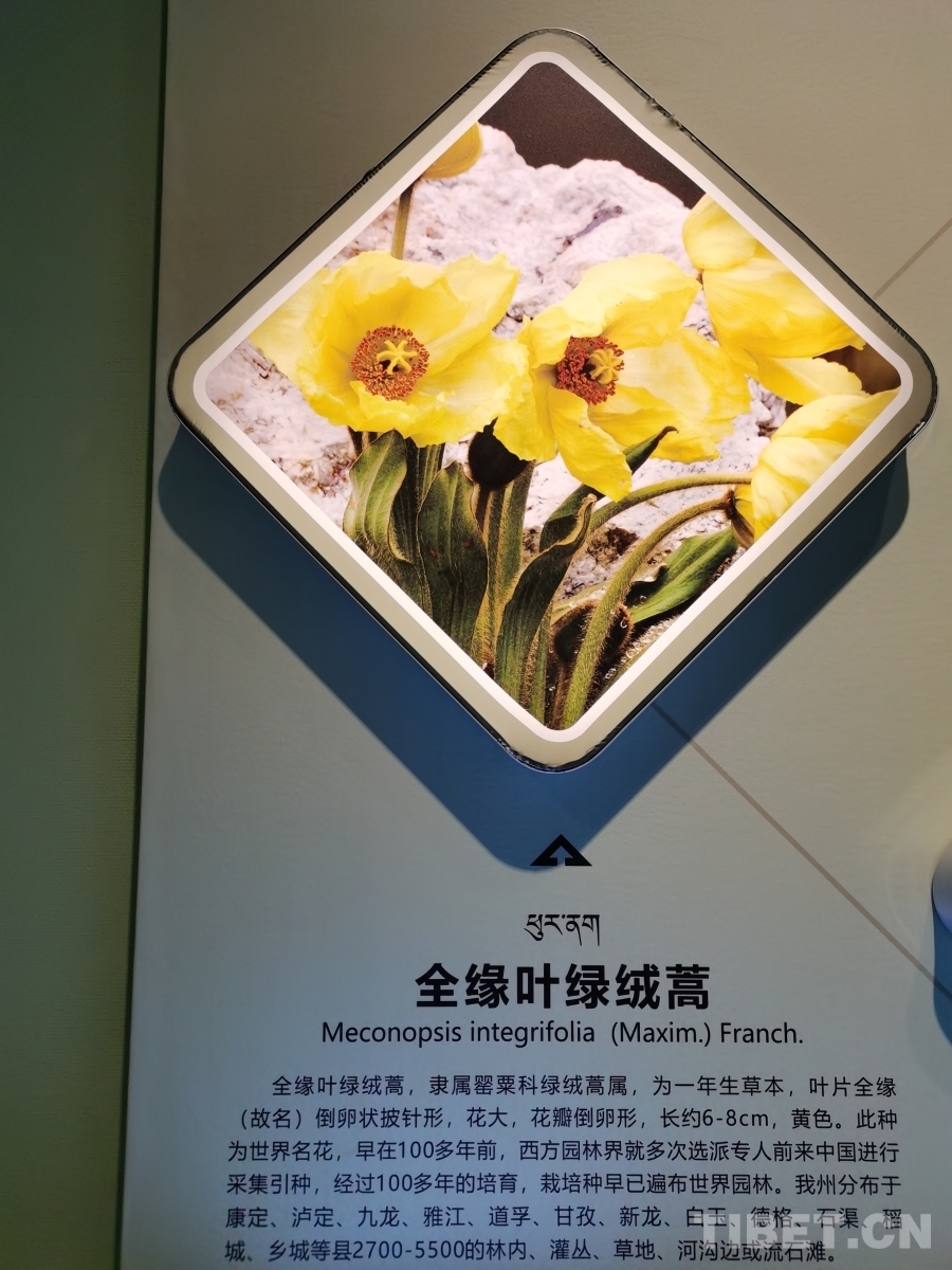 En photo : une présentation sur le Meconopsis integrifolia à l'intérieur du musée de la préfecture autonome tibétaine de Garzê.