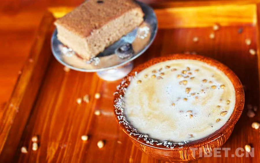 Dans le café intense, il ajoute du lait d'orge, puis saupoudre un peu de fromage aigre local et de grains d'orge grillés – voilà une tasse de café au parfum unique. Oui, une ? tasse de café ? servie dans un bol traditionnel en bois, que les habitants tibétains affectionnent particulièrement.