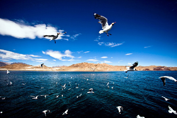 Le lac Bangong est également connu sous le nom de Tsuomu Angla Hongbo, où se trouve l'?le aux oiseaux la plus haute du monde, située à environ 12 km au nord-ouest du comté Rutog de la préfecture Ngari.